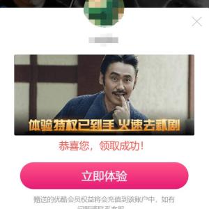 点链接,登录优酷,点免费领3天体验特权,立即领取,可领取暑期优质片库剧3天体验特权后,可享受为期3天的片单内暑期优质片库剧3天免费观看权益(不包含免广权益,不包含1080P权益),适用于PC/手机/iPad端。可以观看的电视剧有《白夜追凶》《军师联盟》《反黑!》《和平饭店》等。