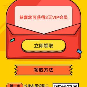 进入微信,点右上角+,添加朋友,公众号,搜索 优酷VIP会员,关注后,点 免费领会员,点立即领取,登录优酷,返回授权微信登录,完成微信绑定优酷账号,即可获得3天优酷黄金VIP会员,享受1080P画质,免广告,还可以观看优酷会员VIP视频。