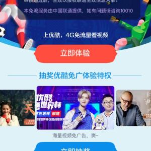 联通用户点链接,填入手机号,验证通过后,获取验证码,免费领取,领取优酷定向流量包,自领取之日成功之日起生效,2018年7月31日23:59自动失效。6月-7月每月可享受15GB优酷视频定向流量免费。领取后需下载……