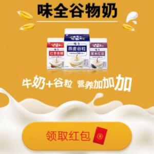 进入支付宝,点扫一扫,选择AR,对准第一张图片“味全 紫米红豆”,稍等片刻,等待识别到100%。点击出现的谷物,领取红包,红包为到店红包,可在支持支付宝的实体门店使用,抵扣现金。味全谷物奶的到店……
