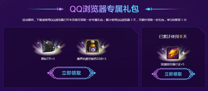 DNF玩家用电脑点链接,手机点链接,可以复制链接发送到电脑打开。下拉,找到“QQ浏览器专属礼包”,点立即领取,下载QQ浏览器,用QQ浏览器打开活动页面(复制下面的链接到QQ浏览器打开),点立即领取,绑定大区,可领取QQ黑钻7天。