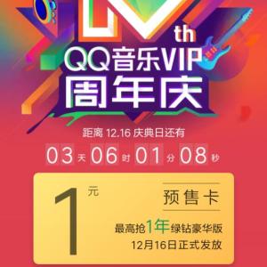 手机QQ点链接,进入QQ音乐QQ音乐VIP 10周年庆。支付1元(使用微信/QQ钱包支付0.95元),可以获得买到一张预售卡,之后下拉屏幕,点立即预约,订阅活动提醒,也可以在手机上设个闹钟提醒。12月16日,进入QQ……