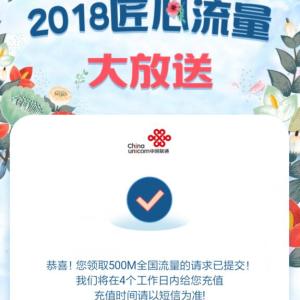 中国联通500M流量 匠心有沃