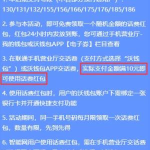联通话费红包 使用沃钱包支付可用