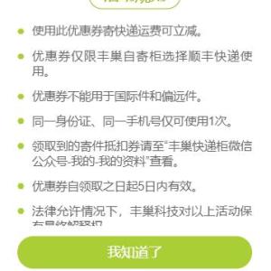 顺丰丰巢快递柜寄件优惠券 5元 限微信领取
