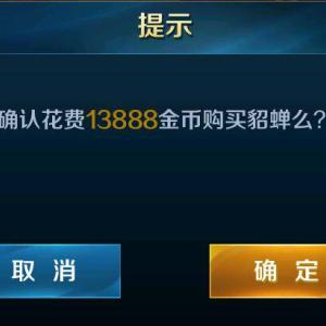 新英雄貂蝉只要13888金币耶,真良心,七七给网龙点个赞。已经入手啦~然而,第一局人机,被虐哭/(ㄒoㄒ)/~~