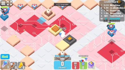 点击格子,跳跃,吃掉蛋糕,变大,收集工具,比如锤子可以让你吃掉更硬的蛋糕。注意躲避红色的区域。