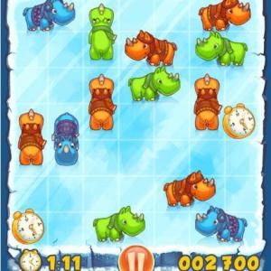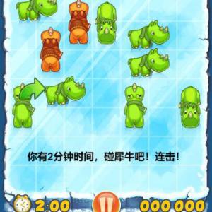 点链接开始游戏,拖动犀牛,相同颜色的犀牛会被顶飞,不同颜色的犀牛会被阻挡。闹钟可以增加时间,炸弹会消除附近所有犀牛。在限定时间内,增加更多的分数吧!