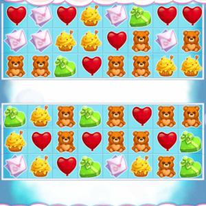 点链接开始游戏,交换物品糖果,消除连续3个及以上相同糖果,底部为道具,可用钻石购买。达到右上角指定分数过关。