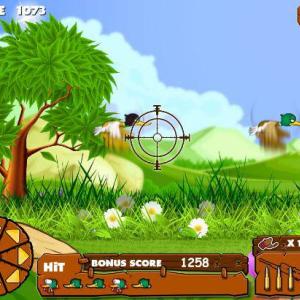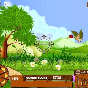 点链接开始游戏,点击左边八方向按钮,控制准星方向,点右边Fire按钮,射击鸭子,不要让鸭子飞走哦!