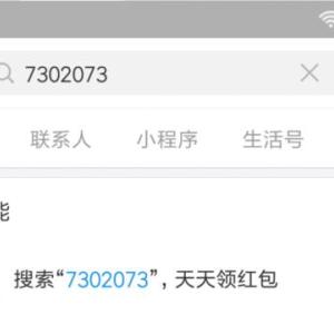 打开支付宝APP,搜索 7302073 领红包,每天都可以领哦!