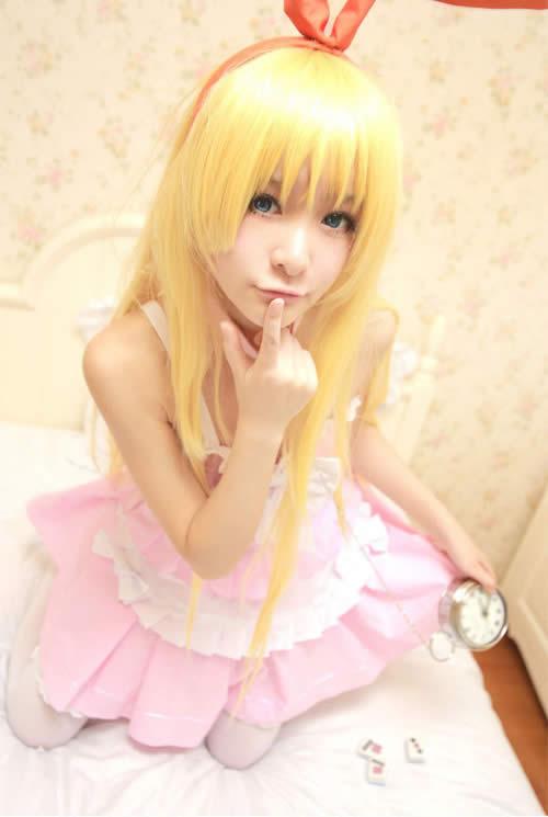 香喷喷的麻将哦,好吃嘎嘣脆~粉红洋裙,兔耳朵,超萌系的天才麻将少女Cosplay一组。