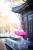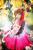 兔娘在亭子的长椅上靠着栏杆而坐,头转过来的照片