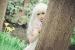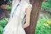 艾克白发白衣Cos面麻身体靠在大树上