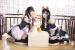 爱丽丝伪娘团蒲兔和小花黑色女仆装摆拍,两人相对而坐,面对镜头