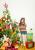 本兮冬季圣诞写真靠在圣诞树旁的小桌子上,手指抵着嘴唇