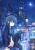 女孩坐在繁华的城市大厦的楼顶,微笑的看着熙熙攘攘的人群。夜空中刮着一轮明月。