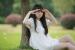 苏里柟穿着白色波点罩衫手放在篱笆上微微倾斜身子正面照