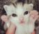猫咪宝宝抬起两只粉色肉垫爪爪,给大家问好