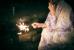 雪雪蹲着点燃一颗仙女棒