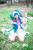 Miyuko拿着四糸奈,蹲在花丛旁,揉着眼睛