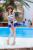 snowfairy8在泳池边摆好姿势,背后工作人员起跳