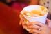 忧忧双手端着纸杯嘟嘴卖萌