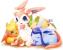 伊布、水精灵、火精灵、雷精灵、太阳精灵、月精灵、叶精灵、冰精灵、仙子精灵依偎在一起,叠罗汉,围圆圈等超萌玩耍场景的头像。画师東みなつ作品。