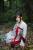 素手掬青霭,罗衣曳紫烟。霓君穿着水墨齐胸襦裙汉服,庐山东林寺清萌摆拍,摄影师自由之竹作品。