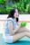 夏日里一抹清凉的风,是否让你想起西瓜的美味,清新与清凉交织的萌感,陈婕夏日体育场摆拍。摄影师YANGCZ作品。