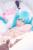 猫守ざーにゃ扮初音未来坐在枕头上,抱着小熊