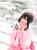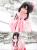 雪花翩翩,ILOVEYOU手势卖萌,何侠穿着粉色和服,还原《LoveLive!》矢泽妮可觉醒前的正月和服SR卡牌形象,附人设图。