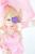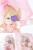 撑着粉伞的萌妹子,做鬼脸扮小猫卖萌,倉坂くるる穿着粉色蝴蝶结裹胸连衣裙,激萌扮演《双斩少女》针目缝,附人设图。