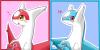 粉色和蓝色甜蜜搭配,《口袋妖怪》的精灵,动画《水都的守护神》的主角拉帝欧斯和拉帝亚斯情侣头像,画师2027作品。