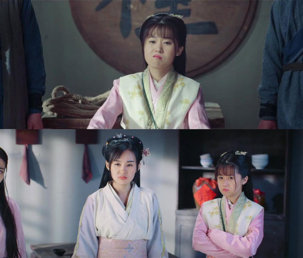 撅嘴卖萌,傲娇萌侦探遭遇傲娇粉丝,王怡悦和郑合惠子在《名侦探狄仁杰》中第五话的萌表情,附郑合惠子很像陈乔恩的侧脸剧照及白客经典表情。