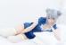 包子头,扮小猫卖萌,まゆふぁむ穿着蓝色超短旗袍激萌摆拍,摄影师きんやマン作品。