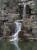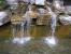 山涧岩石缝隙间缓缓而下的泉水,白色的水花和碧绿的湖面的免费图片素材。