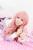 茉夏扮袴田日向跪在床上,双手五指相抵放在下巴前