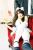かりちゃ左手食指轻抵唇角卖萌,右手撑在裙摆上,跪在地上 3/4侧面
