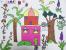 圆梦画室初级班2014-2015学年度暑假第1周花草树木、房屋建筑、羽毛家族等主题的彩笔画作品
