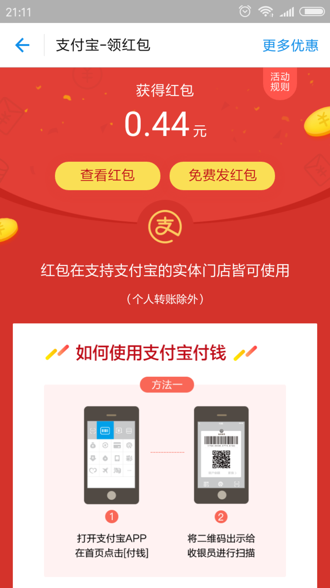 支付宝实体店每日红包
