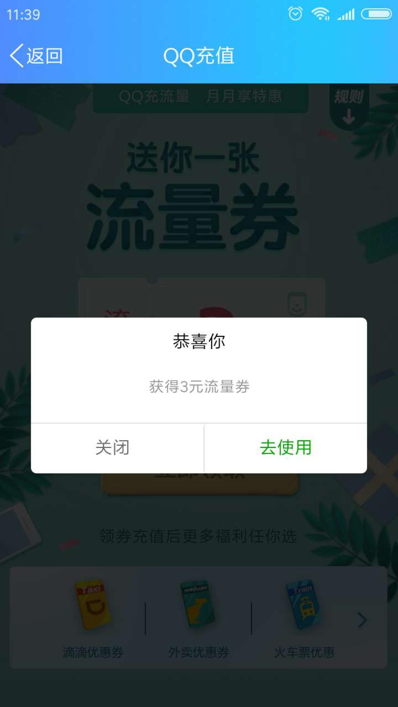 QQ钱包领3元流量券