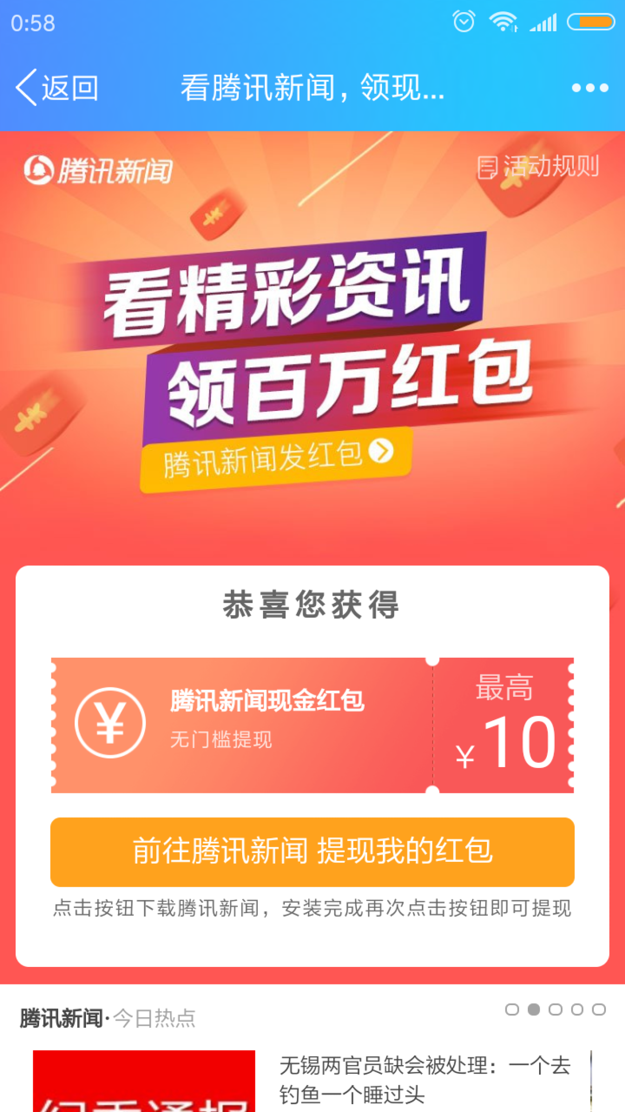 腾讯新闻1分换0.5元话费券