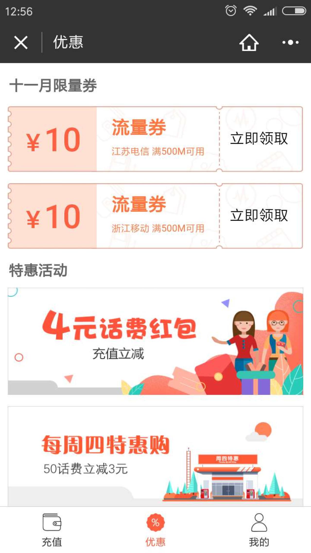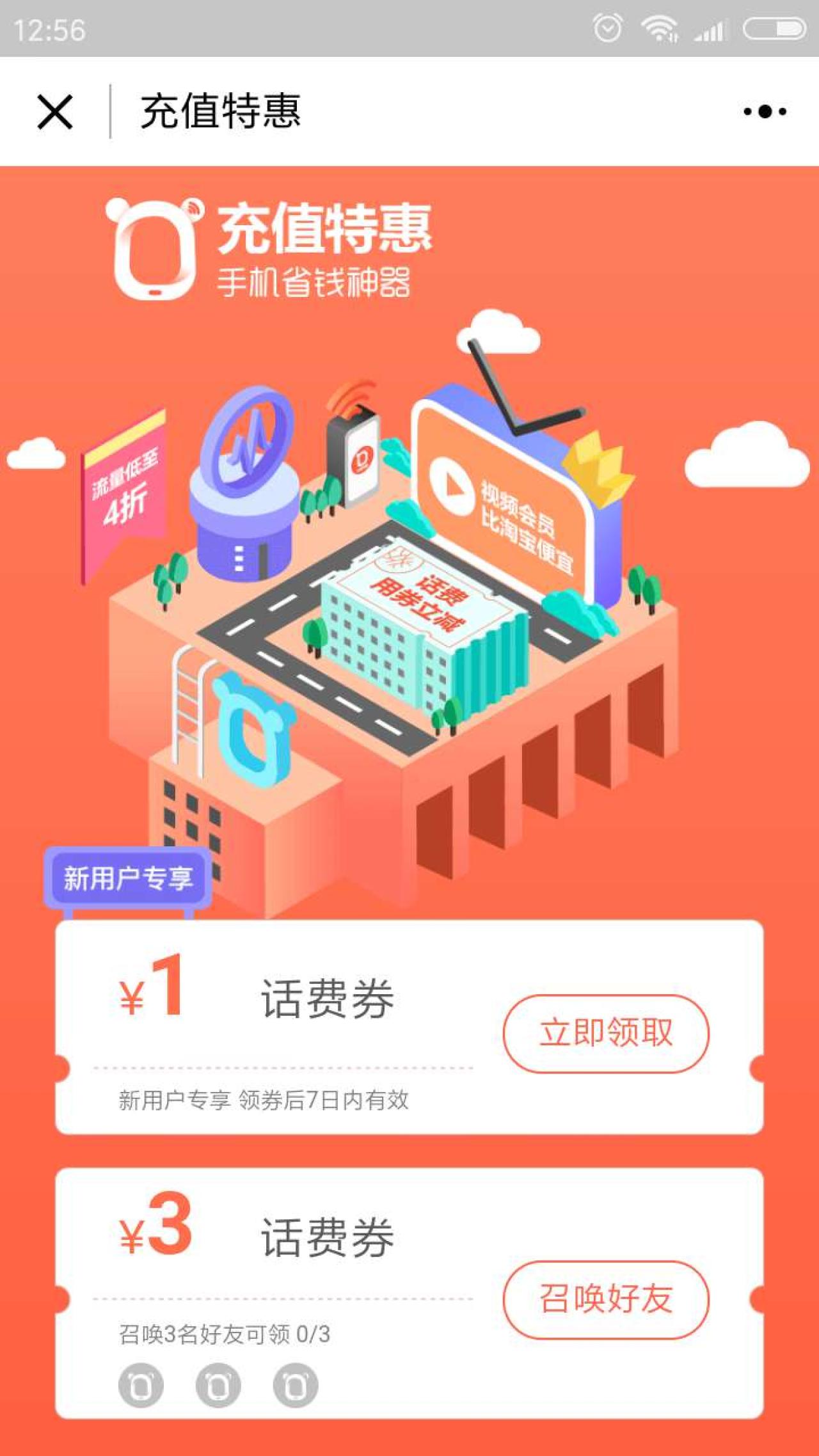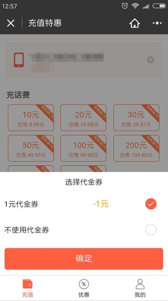 充值特惠公众号1元话费券