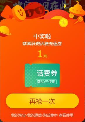 https://s.click.taobao.com/FTPnwWw 点链接,登陆淘宝账户,点 立即拆开,每天100%有奖,有机会获得 现金红包,流量券和话费券,每天可以抽3次,如果今天机会用完了,明天再来哦!