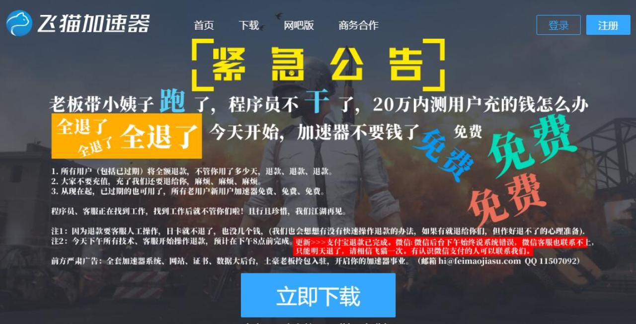 电脑点链接,注册飞猫加速器会员,注册成功,即送100年VIP。点 立即下载,登陆 飞猫加速器,可见VIP剩余有效期为36500天,可以使用全部节点,如果有的节点连不上,更换节点即可。注意,由于官方称老板跑路,所以赠送的100年VIP随时可能失效。
