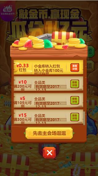 点链接,登陆京东账户,每人初始有8个锤子,直接敲,可以获得奖品。连续8次,有很大的概率抽中现金。现金会发到京东小金库账户,需要开通京东小金库可以提现。