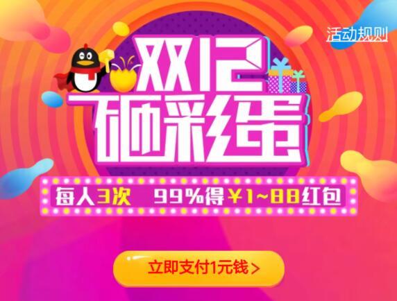 手机QQ点链接,点 立即支付1元钱,可以获得一次砸彩蛋机会,每人最多可以买三次机会,每次都有99%概率得1-88元现金红包,注意不是100%哦!