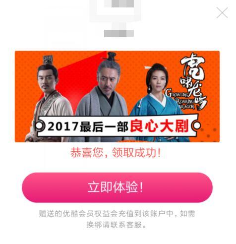 联通用户点链接,下载联通手机客户端,用联通手机号+服务密码登陆,在首页中部横幅,找到 0元限时领取优酷体验会员。进入后,点 立即领取,登陆 优酷账户,即可领取成功。非优酷会员可领取3天优酷体验VIP,优酷会员可领取5元优惠券,参加优酷1221买一送一活动,买VIP年卡可抵扣现金。