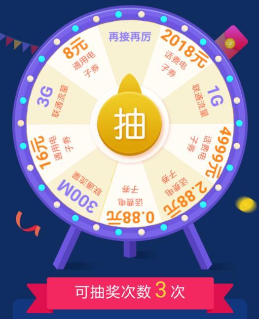 联通用户点链接,下载联通手机营业厅,登录后,在首页中部,找到 沃钱包点亮2018 如图所示横幅。点击去,点 抽盘,输入手机号和验证码。每人有三次抽奖机会。第三次中奖概率大。奖品有流量和话费券。小希中了0.88元话费券。中奖后,点第二条链接,下载沃钱包APP,选通信交费,满5元即可用券。